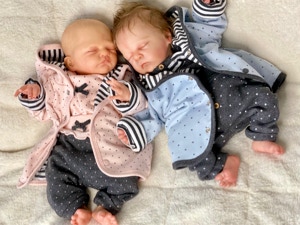 Auf Grund der vielen Reborn-Shops, die momentan im Netz zu finden sind: Bitte informieren Sie sich, wenn Sie in Erwägung ziehen, sich ein Rebornbaby zu kaufen. Es werden gerade in vielen solcher Shops sehr viele sehr billige Reborns angeboten. Diese sind in keinem Fall mit handgefertigten Rebornbabys zu vergleichen. Weder im Material noch in der Ausführung und Bearbeitung der Bausätze. Außerdem entstehen sie oft aus Plagiat-Bausätzen, zum Nachteil der Künstler, die diese OOAKs zur Herstellung von Vinyl-Bausätzen modelliert haben.