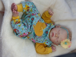 Hier stelle ich Ihnen meine Reborn-Babys vor. Sie sind immer in der Real-Skin-Technik gefärbt. Die Füllungen enthalten in den Gliedmaßen Glasgranulat und Füllwatte. Die Stoffkörper enthalten Softgranulat in einem Stoffbeutel verpackt. Manchmal ist Glasgranulat zum Beschweren in einem Stoffsäckchen mit eingearbeitet.